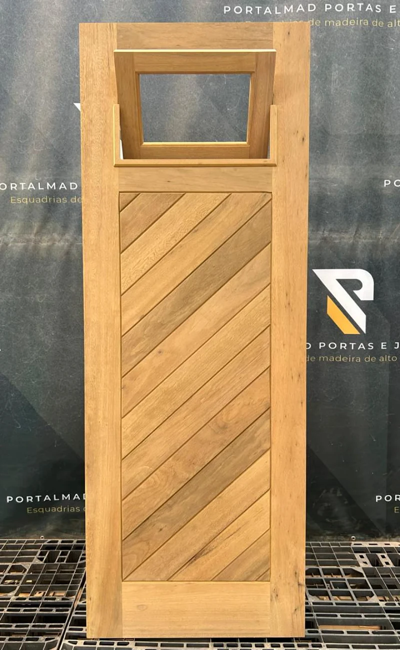 Assim como a porta de madeira com visor, essas aberturas também são fabricadas sob medida, podendo incluir sistemas de venezianas móveis ou fixas, palhetas em diferentes formatos e dimensões personalizadas conforme a necessidade do projeto.