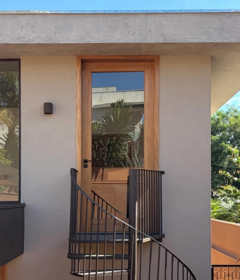 As portas de madeira maciça com vidros da Portalmad são fabricadas com espécies nobres — de lei — ou Eucalipto premium de rigorosa seleção, garantindo matéria-prima de origem 100% legal e sustentável. Além disso, a empresa oferece a maior garantia do mercado para portas de madeira, reforçando seu compromisso com qualidade, durabilidade e confiança.
