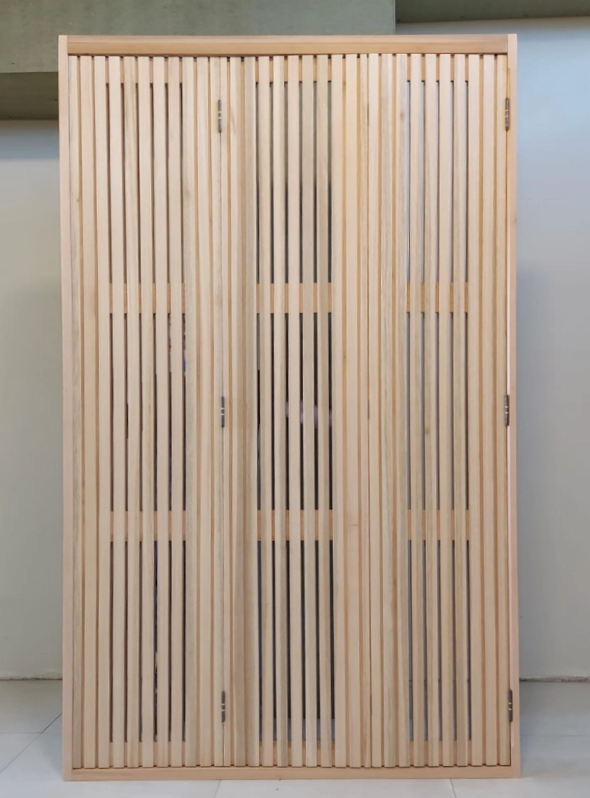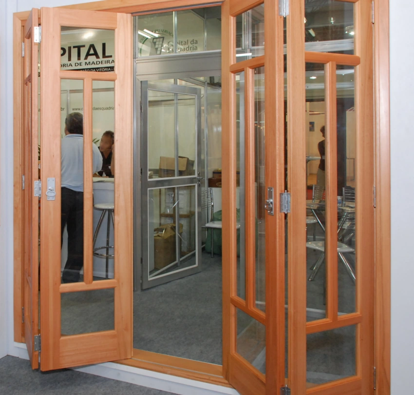 Para a fabricação de aberturas pantográficas há grande diversidade de madeiras disponíveis e possibilidade de instalação de dobradiças, fechaduras ou puxadores personalizados.