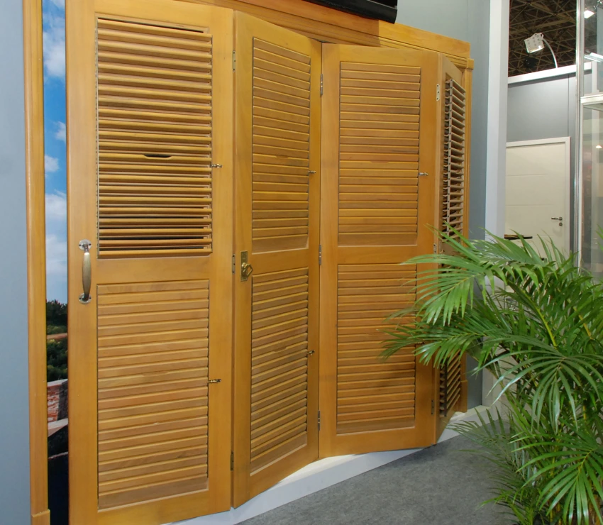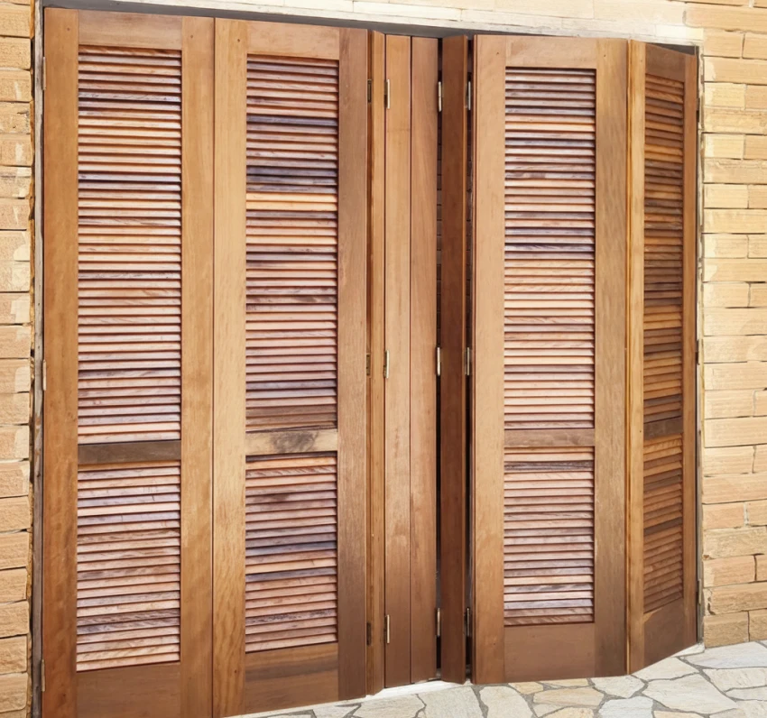 Porta pantográfica em madeira com veneziana móvel — articulada — shutters