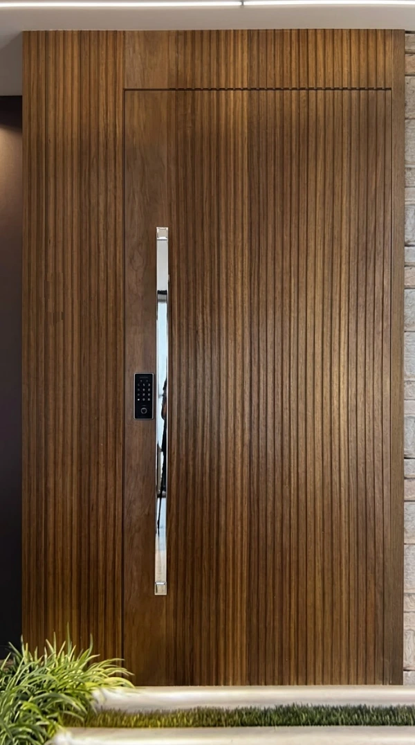 As portas clássicas de madeira também podem ser personalizadas e adaptadas a projetos contemporâneos, mantendo o estilo tradicional e incorporando soluções técnicas modernas. Por exemplo, em uma porta personalizada de madeira é possível integrar ferragens sofisticadas, fechaduras digitais multiponto e dobradiças reforçadas para ampliar segurança e estabilidade estrutural.