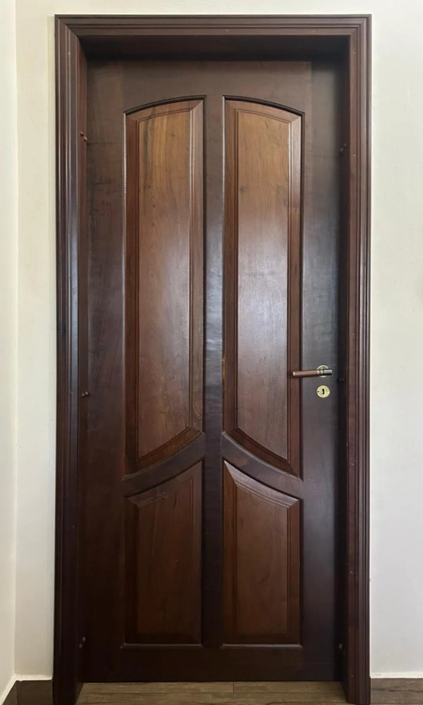 As portas de madeira escura de fabricação Portalmad estão disponíveis em duas versões, ambas no alto padrão: