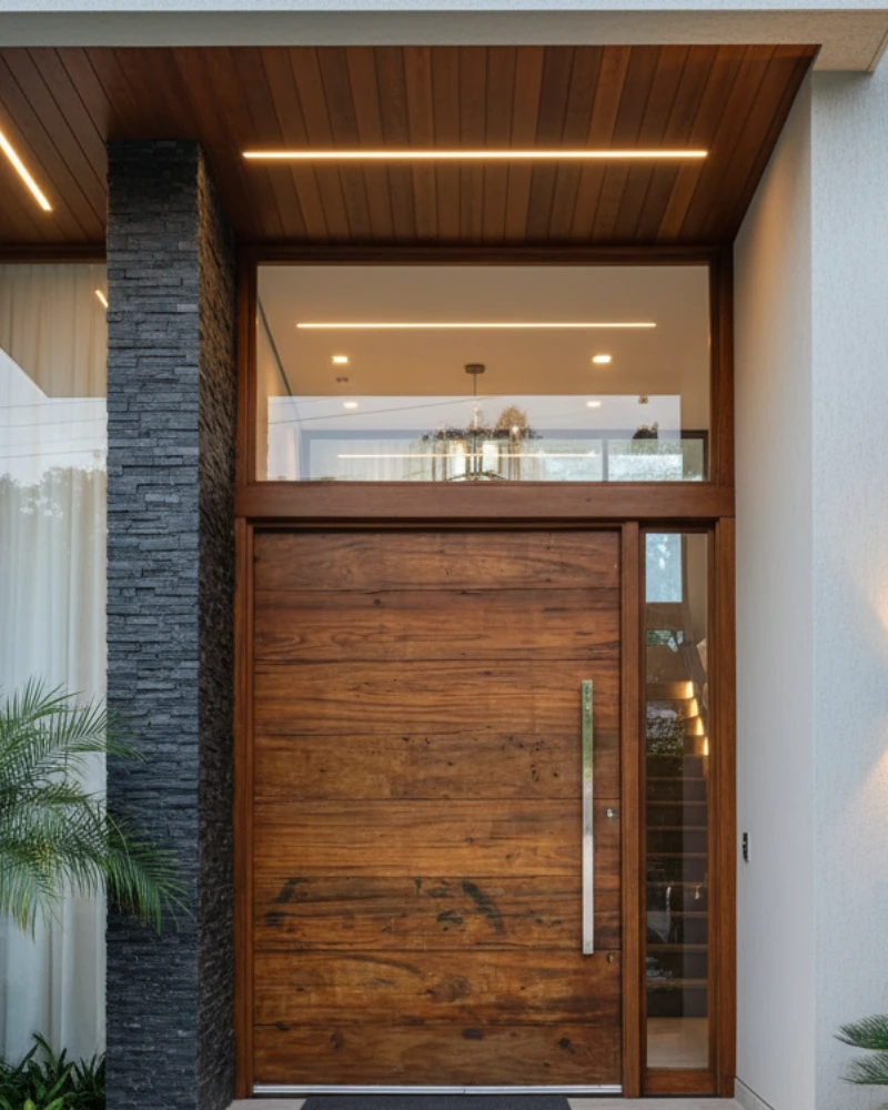 A madeira Peroba permite revestir portas grandes de madeira, de amplas dimensões, com total segurança, proporcionando beleza e uma textura única.