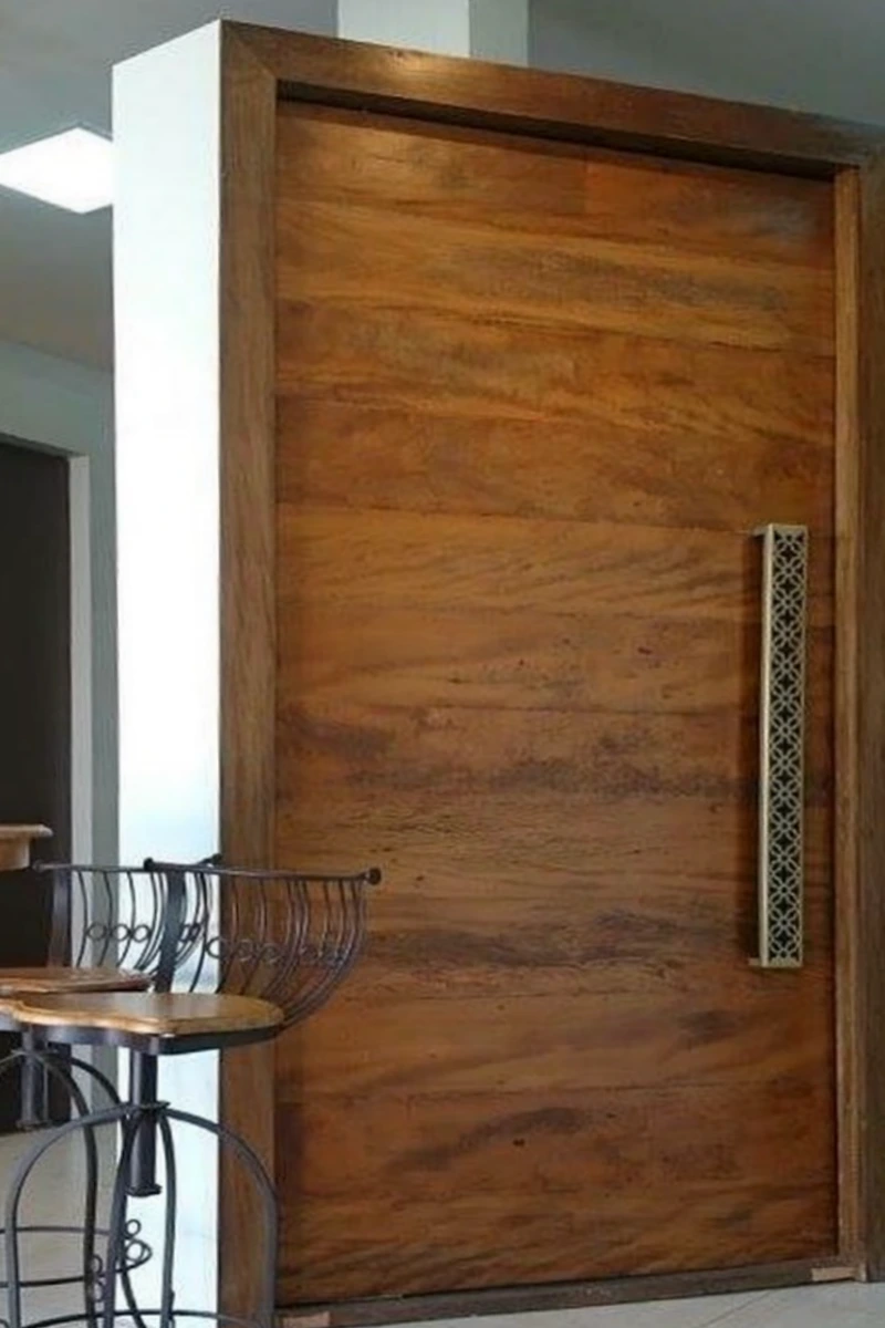 A combinação de estilo antigo com detalhes elaborados, ferragens ou fechaduras modernas, faz da porta de madeira de demolição um elemento de beleza atemporal.